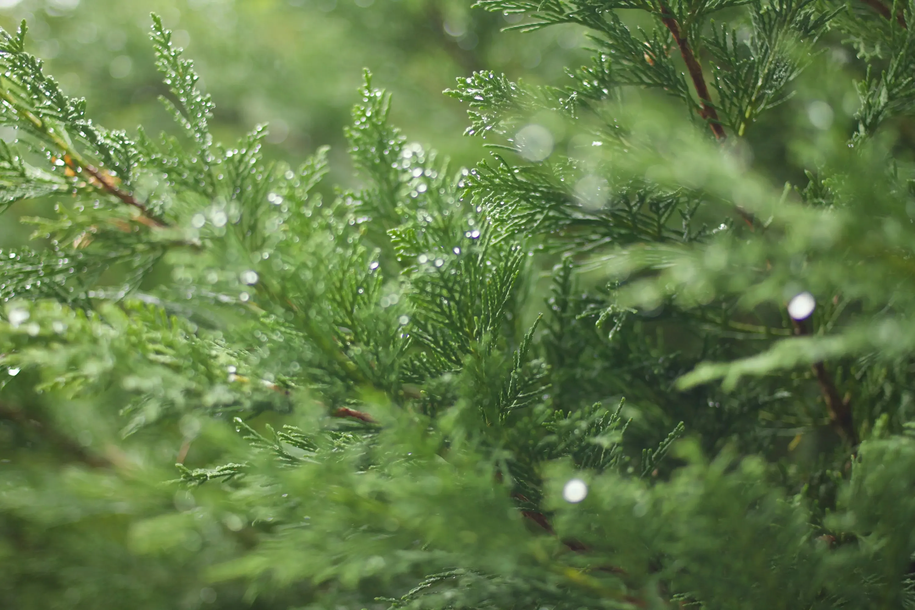 Высаживать тую нужно на том же уровне, как и в питомнике. Расстояние между саженцами — 40 см. Если ряды вышли плотными и узкими, то живая изгородь сформируется быстрее. После посадки замульчируйте землю.